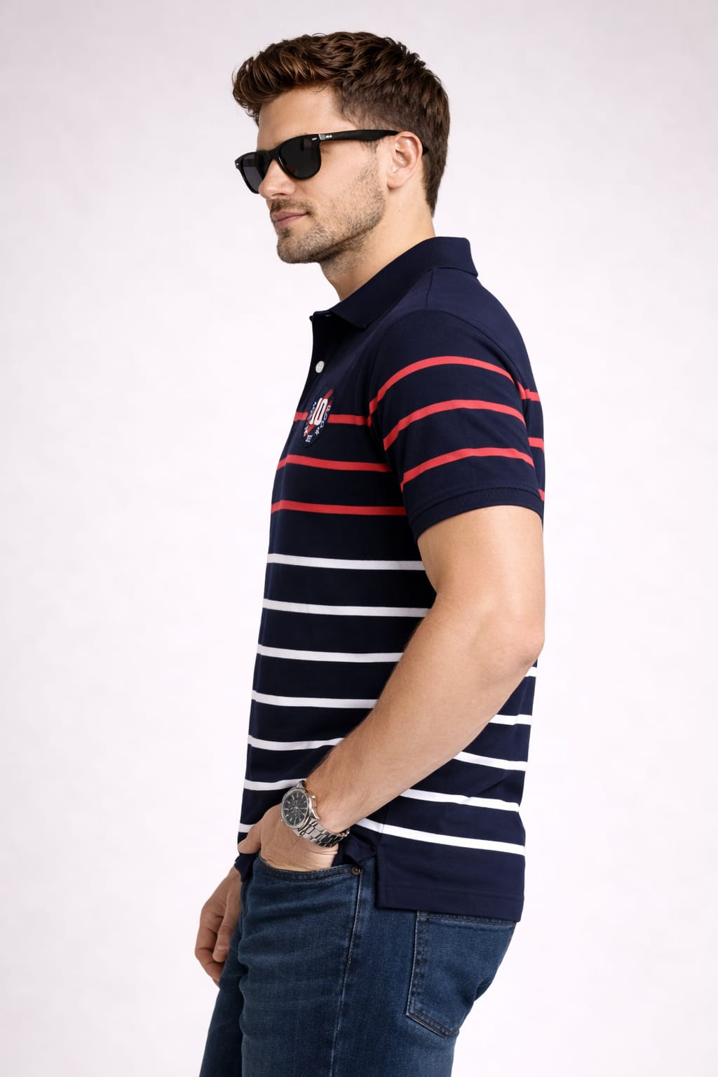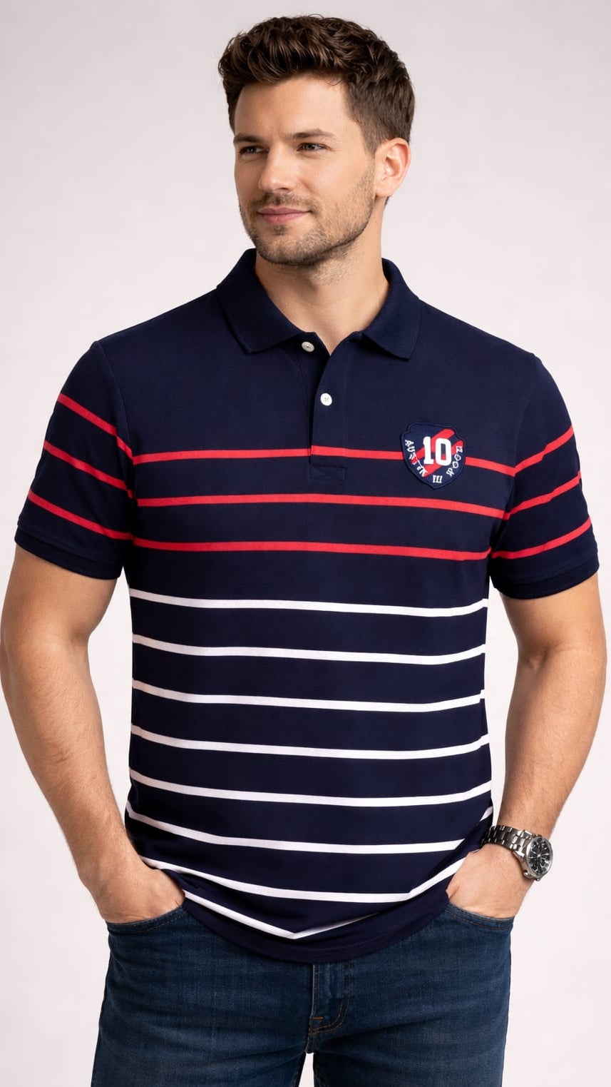 Navy Stripers Polo T-shirt